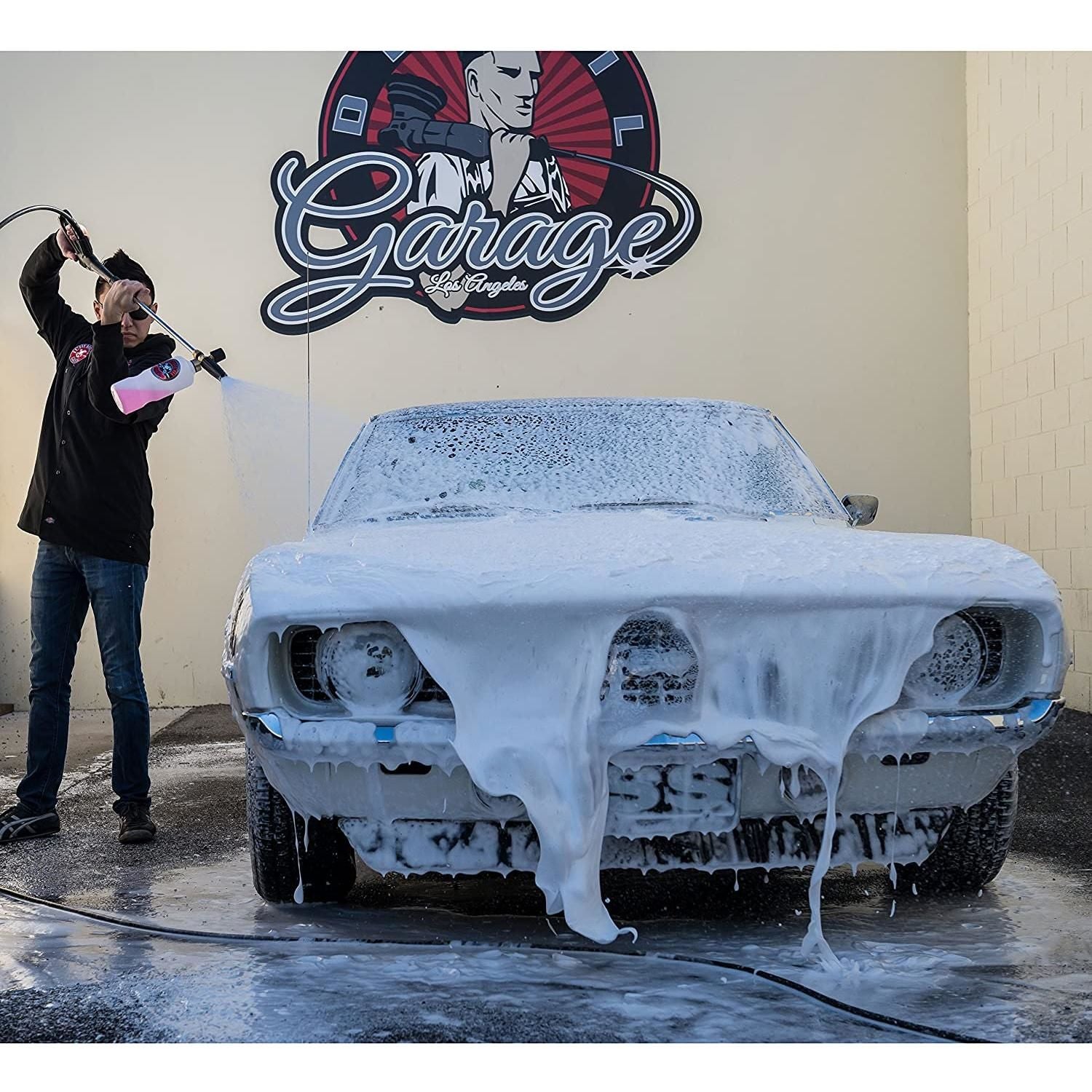 Smells good. Makes lots of soap bubbles and takes out all the nasty gunk. I use it with my foam gun and bucket and does the job great.